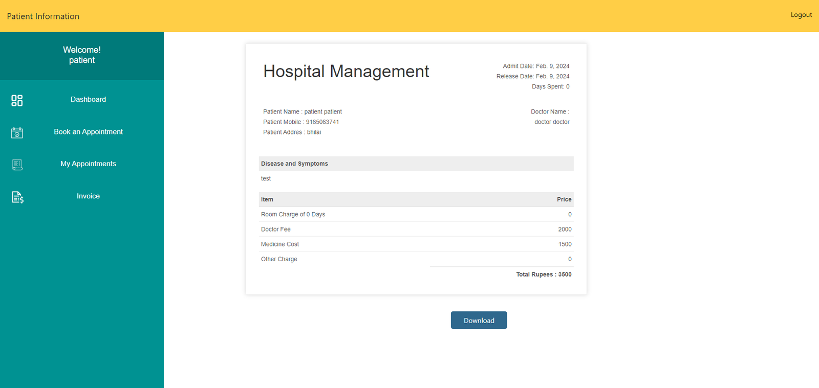 2. View the details of the patient (symptoms, name, mobile) assigned to them by admin.