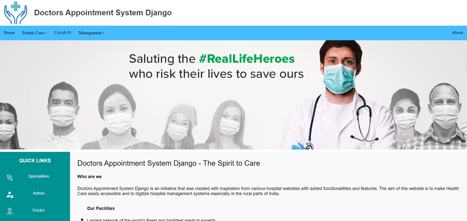 The doctor appointment booking website project aimed to create a user-friendly platform for scheduling medical appointments efficiently. Leveraging modern web technologies such as HTML, CSS, JavaScript, and Django, the website offers a seamless experience for both patients and healthcare providers.