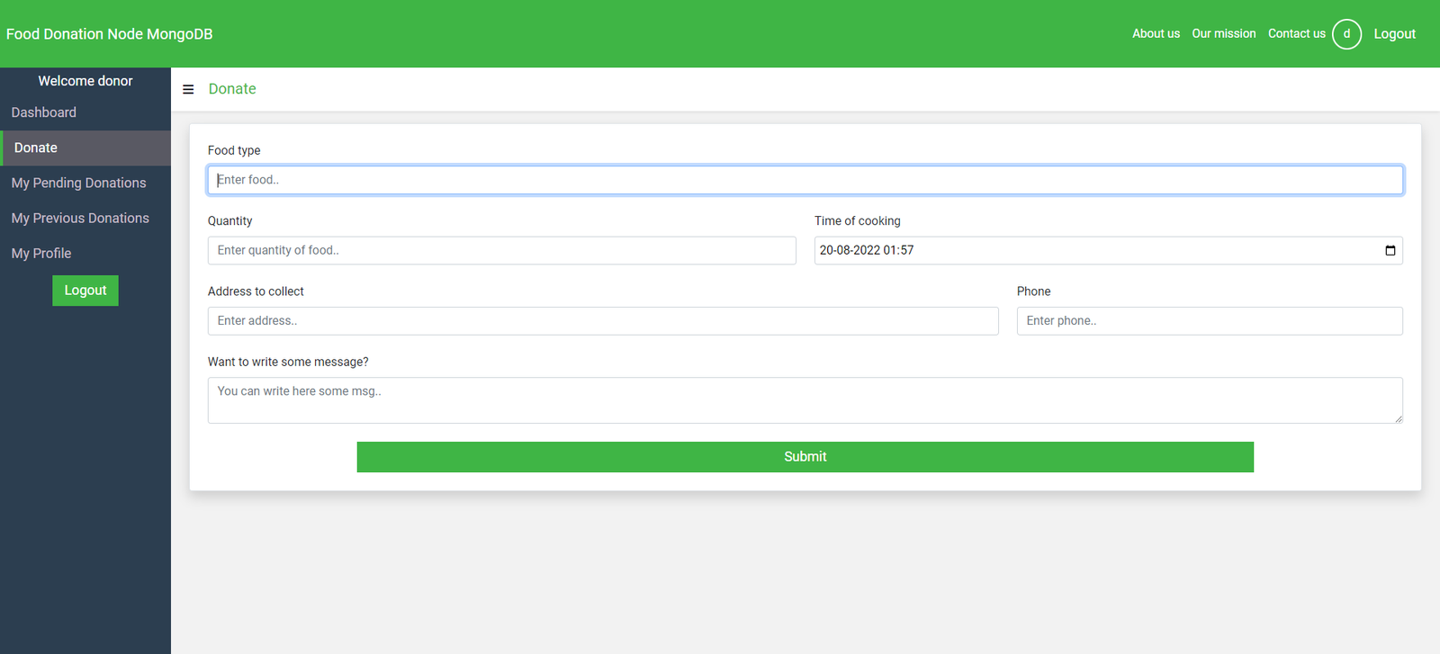 2. Agents can mark their collection upon collection of food from donor’s home.