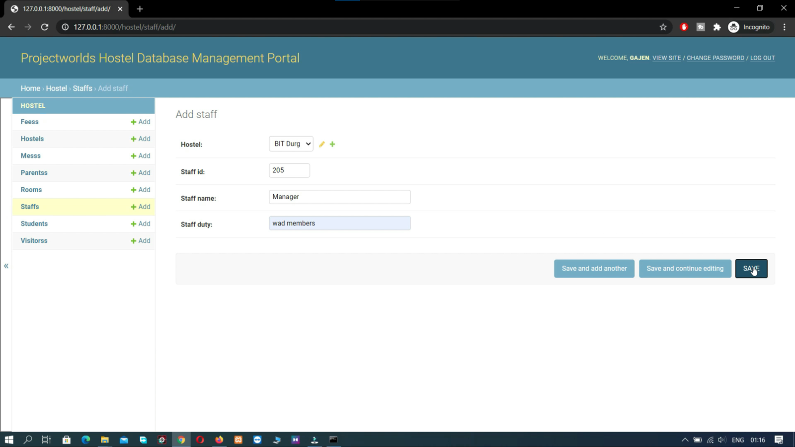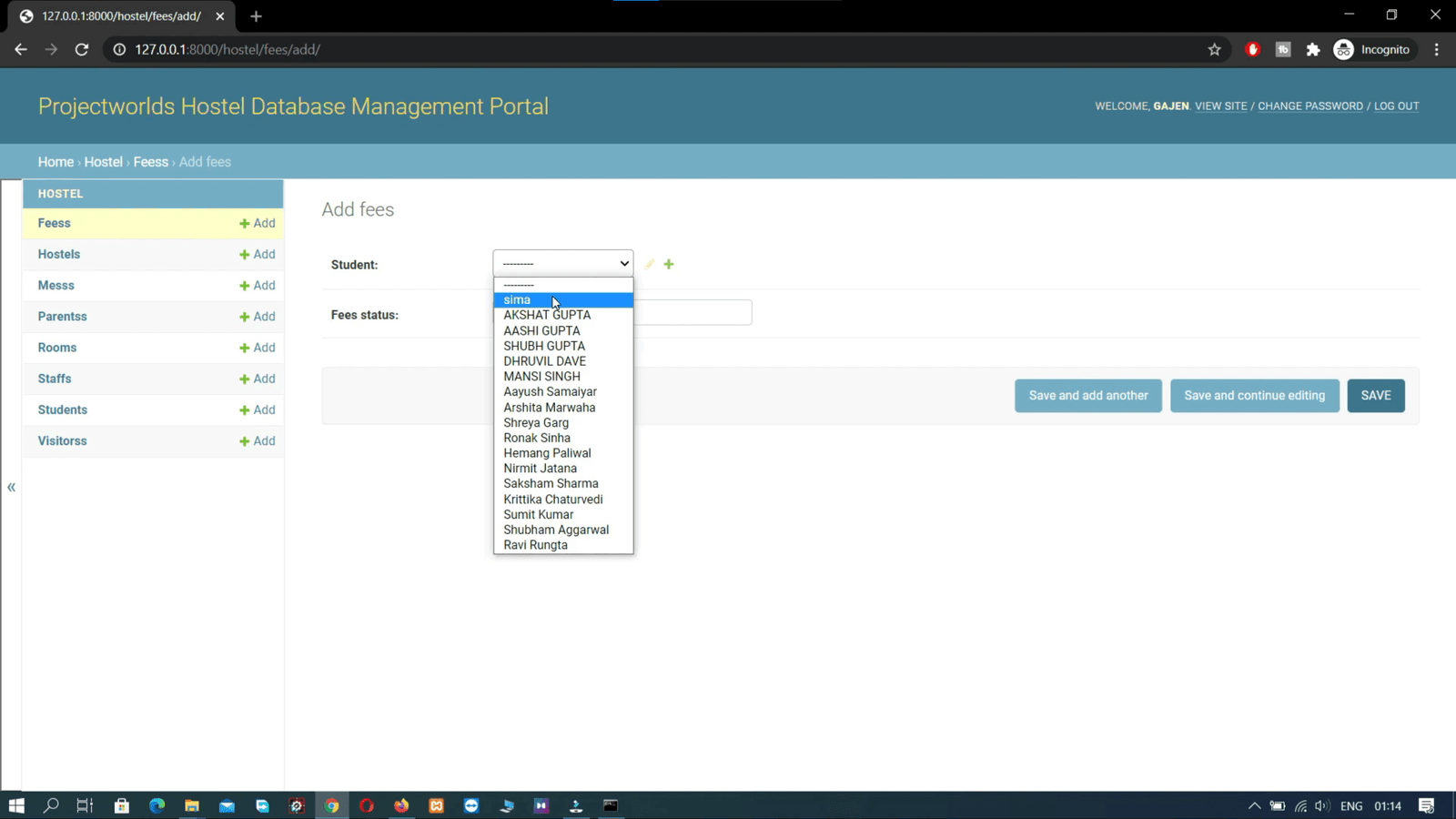 Hostel Management System Python Django