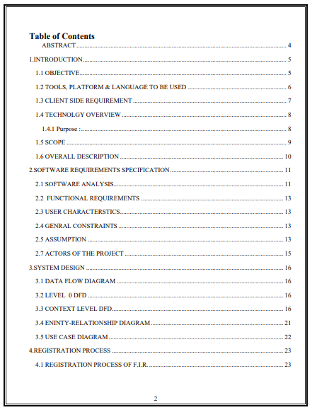 Creating a project report for an online crime reporting system in PHP with MySQL involves several sections. Below is an outline of what your report might include. Adapt the structure based on your project’s specific requirements and details.
