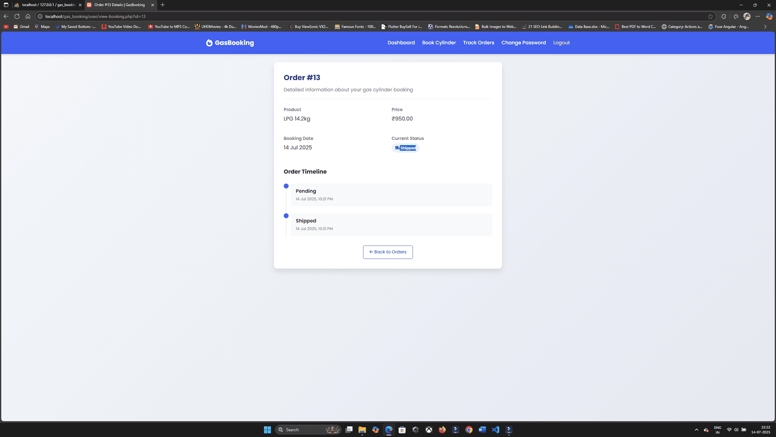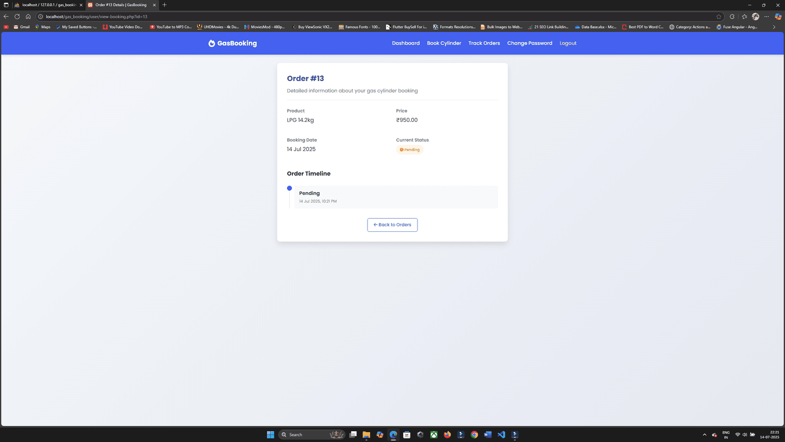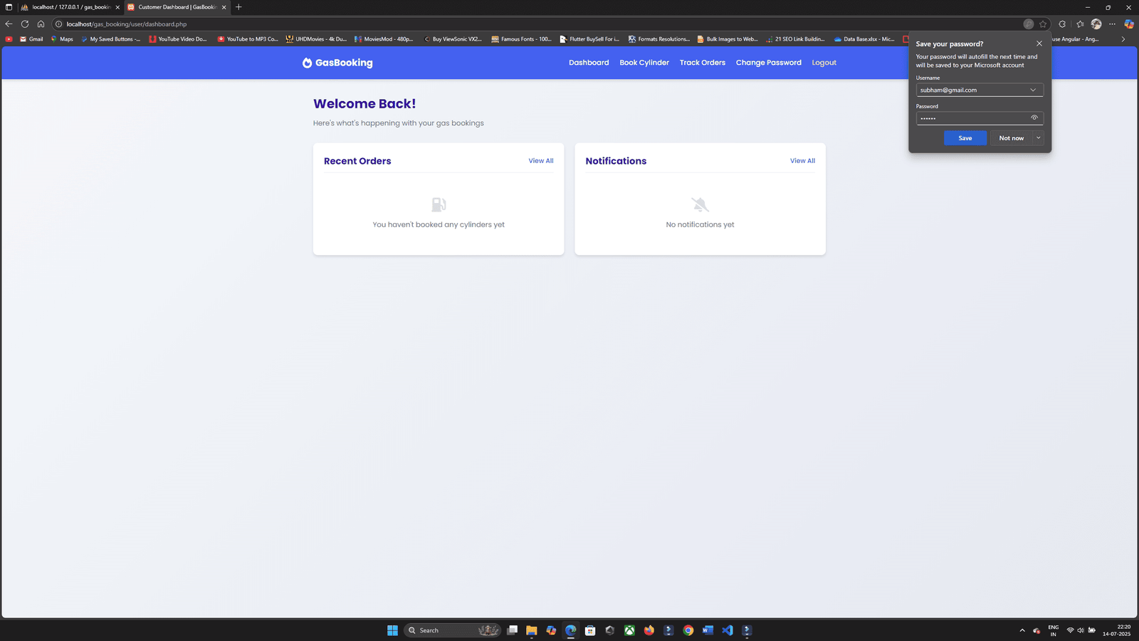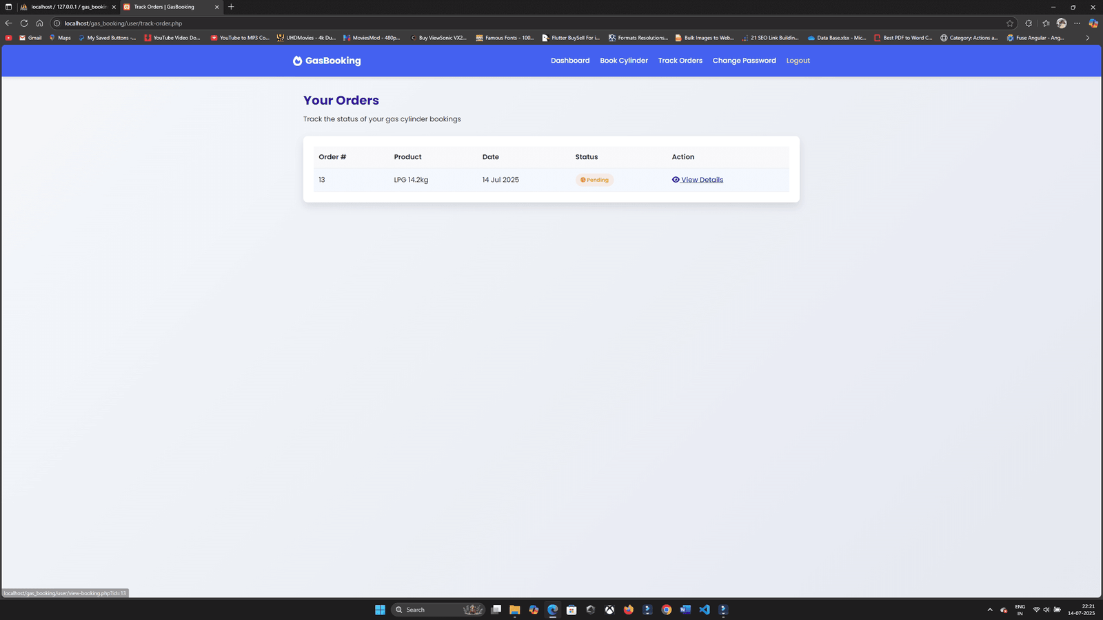 bookings Gas cylinder orders id, user_id, quantity, booking_date, status