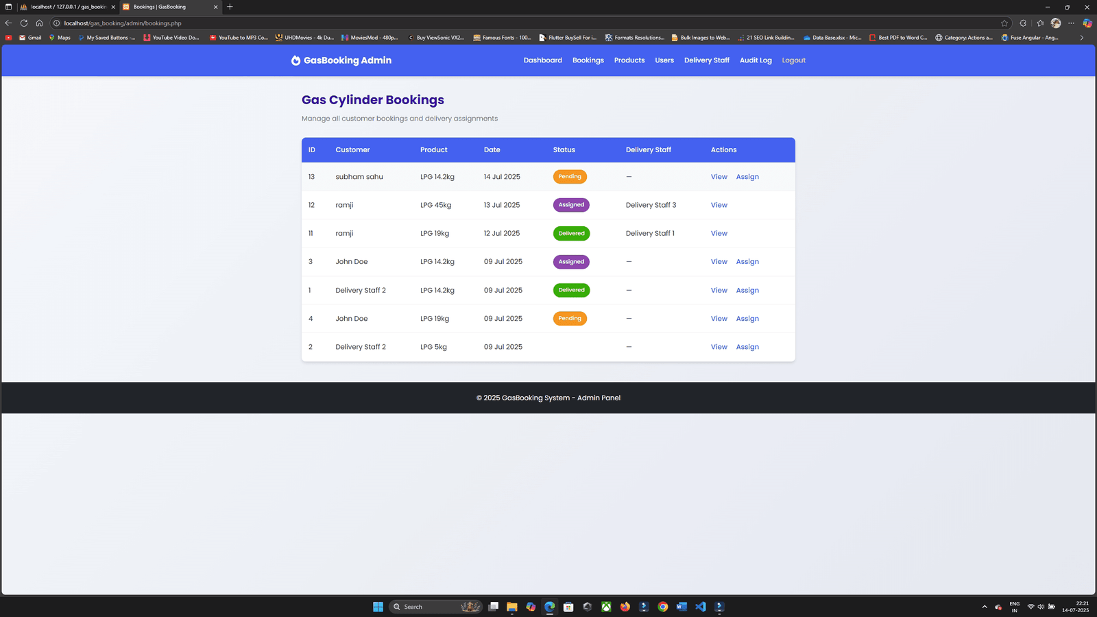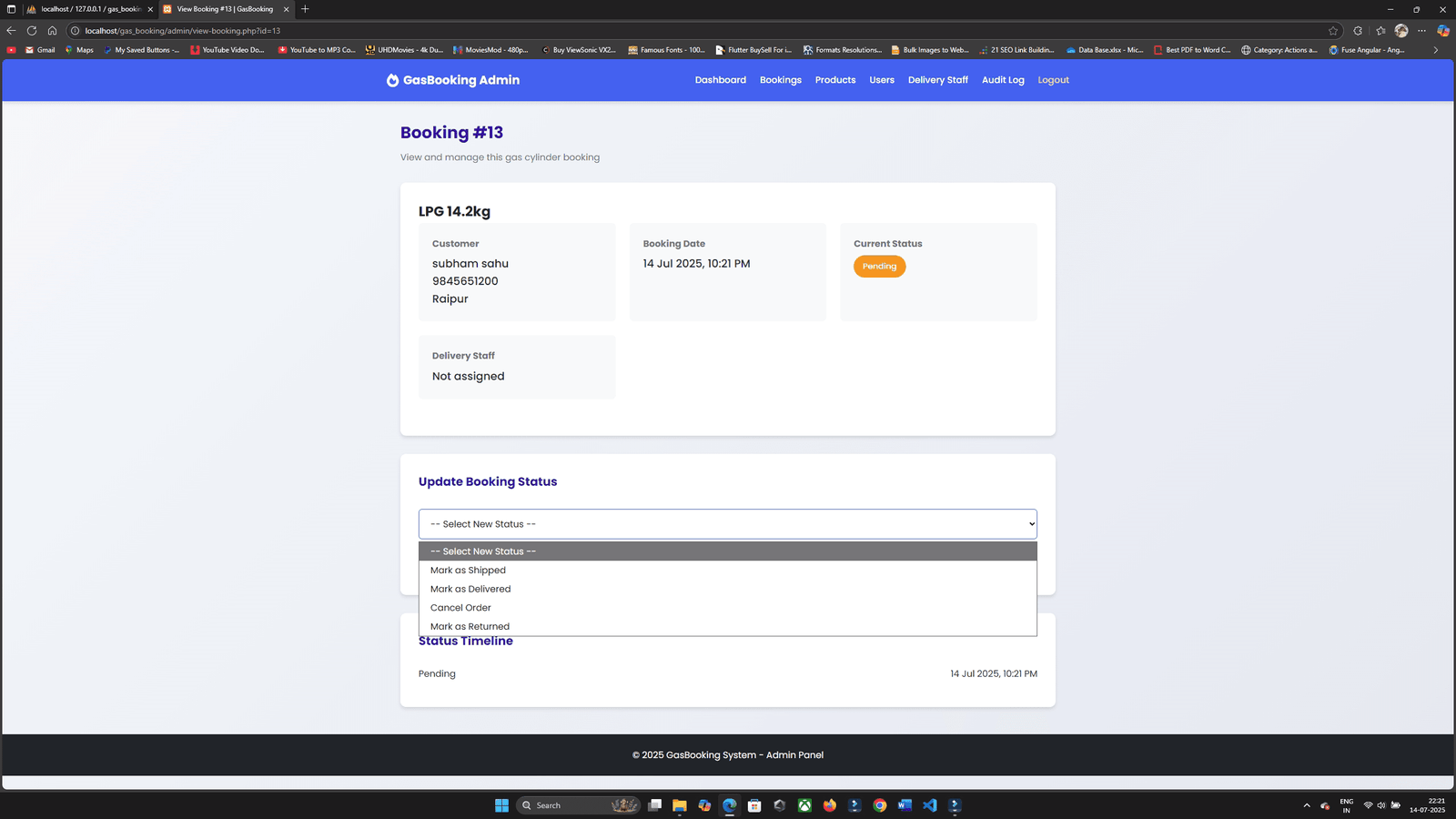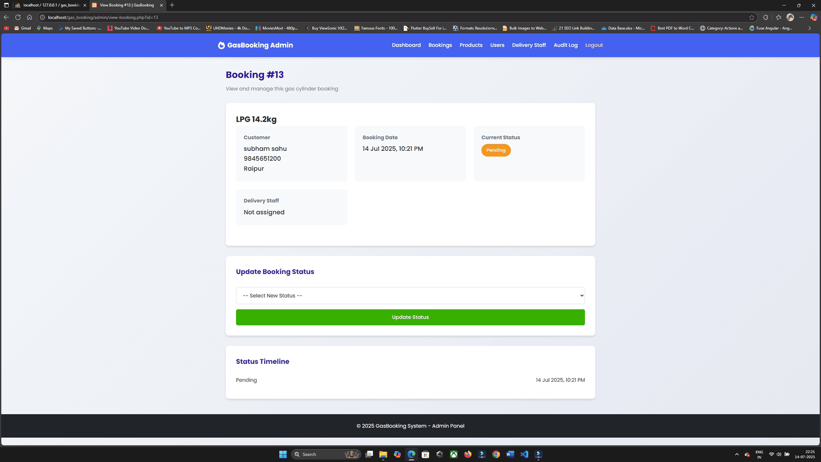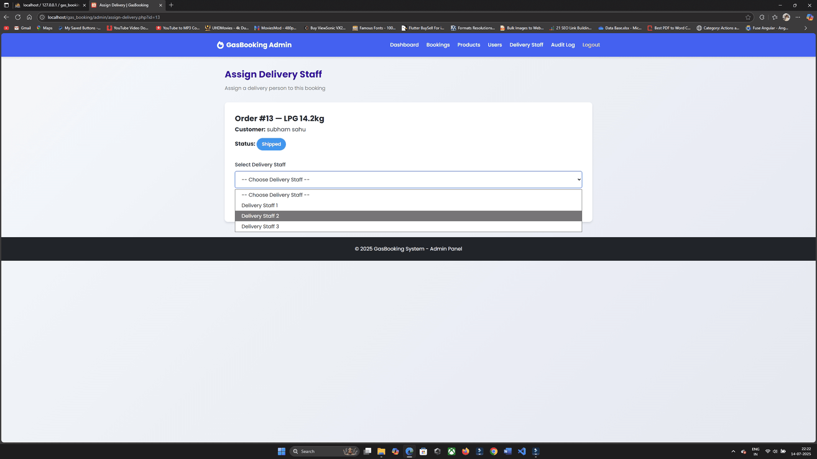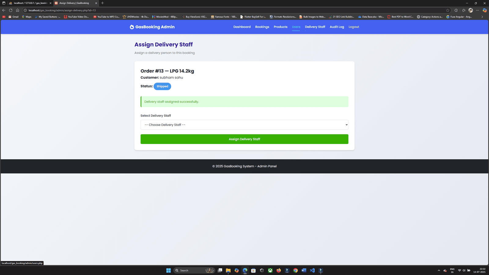 • Admin sees ‘Pending’ bookings and assigns a Delivery Staff member.