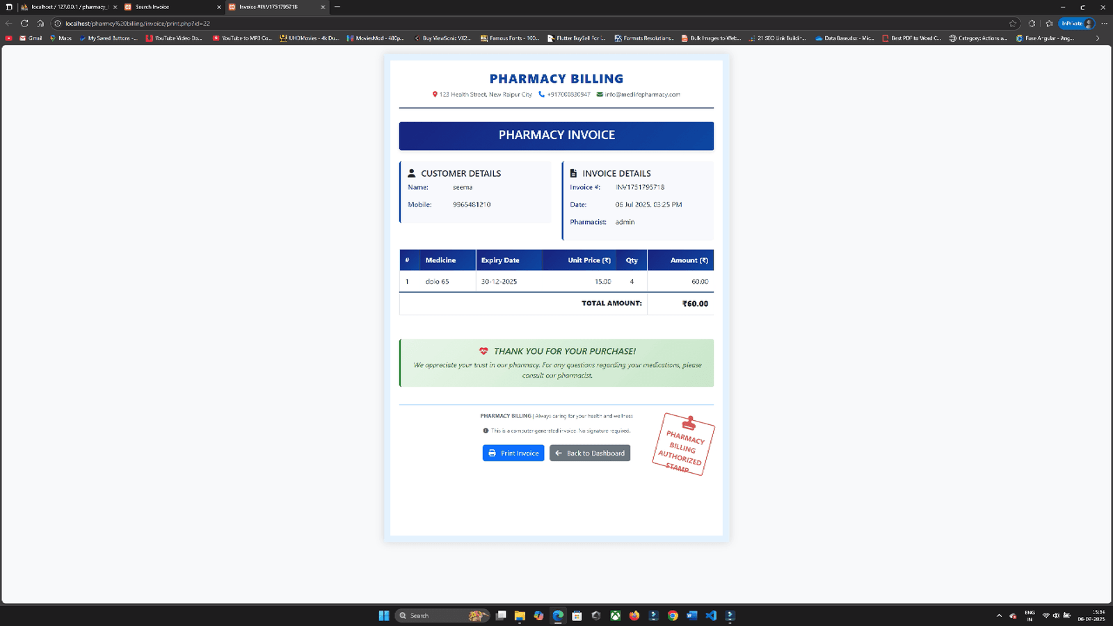 Unzip the file and place it in C:\xampp\htdocs\pharmacy_billing - Start XAMPP