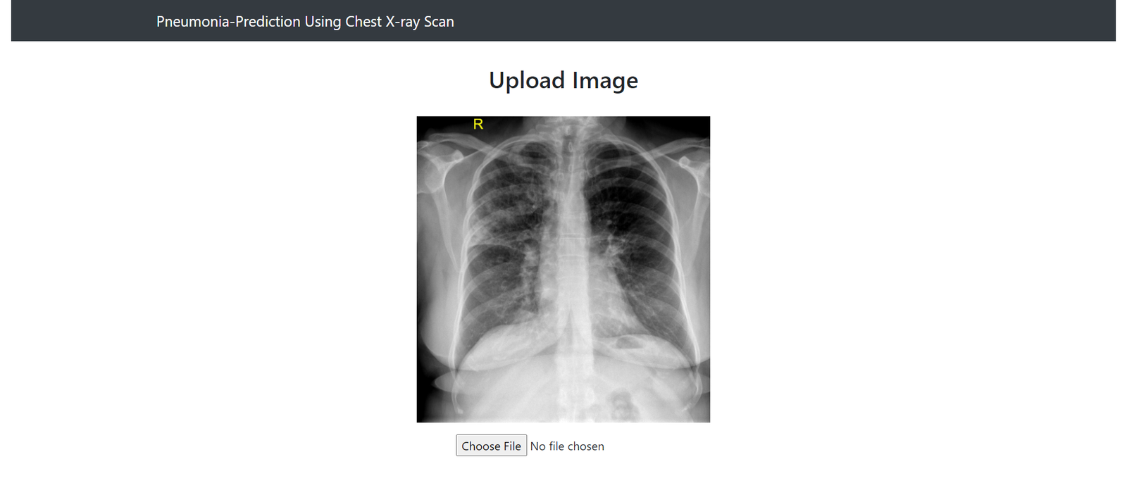 Chest x–ray: An x–ray exam will allow your doctor to see your lungs, heart and blood vessels to help determine if you have pneumonia. When interpreting the x–ray, the radiologist will look for white spots in the lungs (called infiltrates) that identify an infection. Build an algorithm to automatically identify whether a patient is suffering from pneumonia or not by looking at chest X-ray images. The algorithm had to be extremely accurate because lives of people is at stake. This is a Flask web app designed to analyze a chest x-ray and predict whether a person has TB/pneumonia or not.
