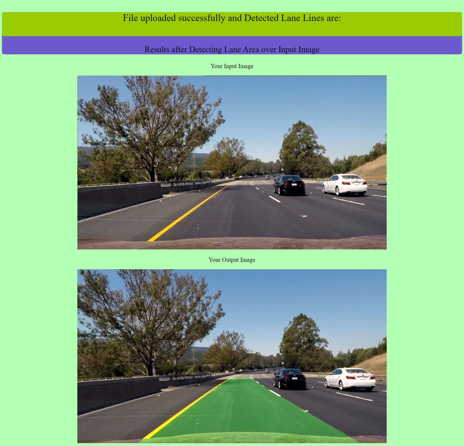 Road Lane Detection Computer Vision Python Flask Web app. Lane Detection on Road Images which includes advanced image processing to detect lanes irrespective of the road texture, brightness, contrast, curves etc. Used Image warping and sliding window approach to find and plot the lane lines.